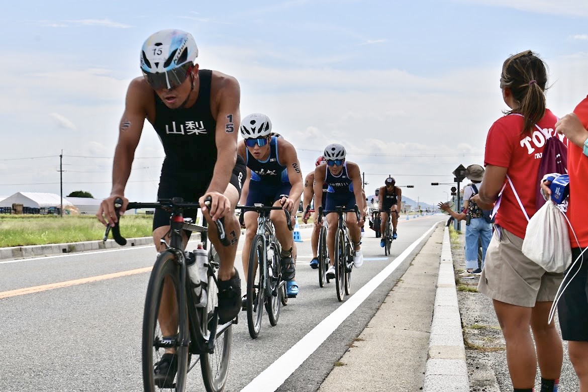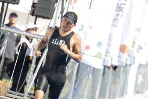スイムでは持ち味をしっかりと発揮し、トップグループでバイクパートへ移行しました。
